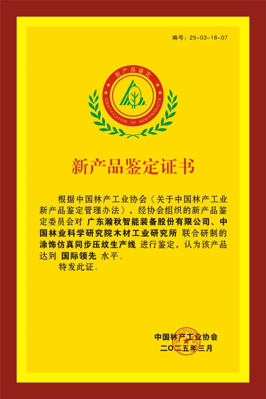 2025騫?鏈?8鏃ワ紝涓浗鏋椾駭宸ヤ笟鍗忎細緇勭粐涓撳鍦ㄥ箍涓滃彫寮縐戞妧鎴愭灉閴村畾浼氾紝瀵規櫘鐟炵壒鑷富鐮斿彂鐨勨滄秱楗頒豢鐪熷悓姝ュ帇綰瑰叧閿妧鏈強瑁呭鈥濇柊鎶鏈強鍏垛濇秱楗頒豢鐪熷悓姝ュ帇綰圭敓浜х嚎鈥滄柊浜у搧榪涜浜嗚瘎浠蜂笌閴村畾銆傜粡榪囦笓瀹跺鍛樹細鐨勪弗鏍艱瘎瀹★紝鍑?b>棰犺鎬ф妧鏈垱鏂板拰鏄捐憲鐨勭粡嫻庣ぞ浼氭晥鐩婏紝璇ユ柊鎶鏈?鏂頒駭鍝佽璇勫畾涓衡滃潎杈懼埌鍥介檯棰嗗厛姘村鉤鈥濄?/b>榪欎竴鎴愭灉鏍囧織鐫鎴戝浗鍦ㄩ珮绔楗版澘鏉愭櫤鑳藉埗閫犻鍩熷疄鐜伴噸澶х獊鐮達紝涔熶負鍏ㄧ悆瑁呴グ鏉挎潗琛屼笟鏍戠珛浜嗘柊鐨勬妧鏈爣鏉嗐?